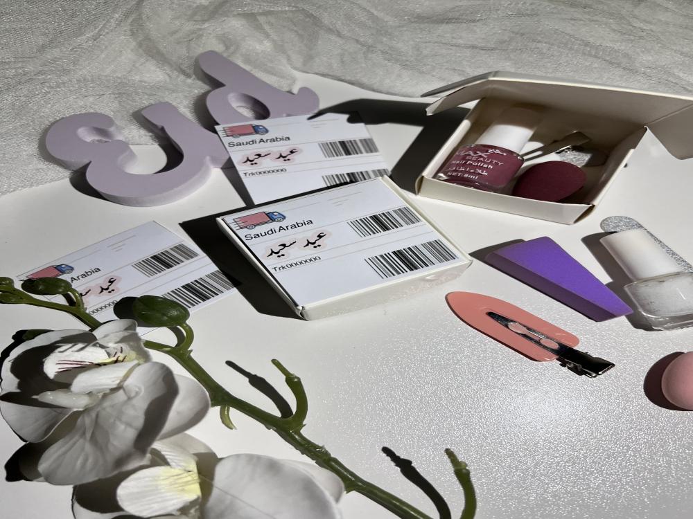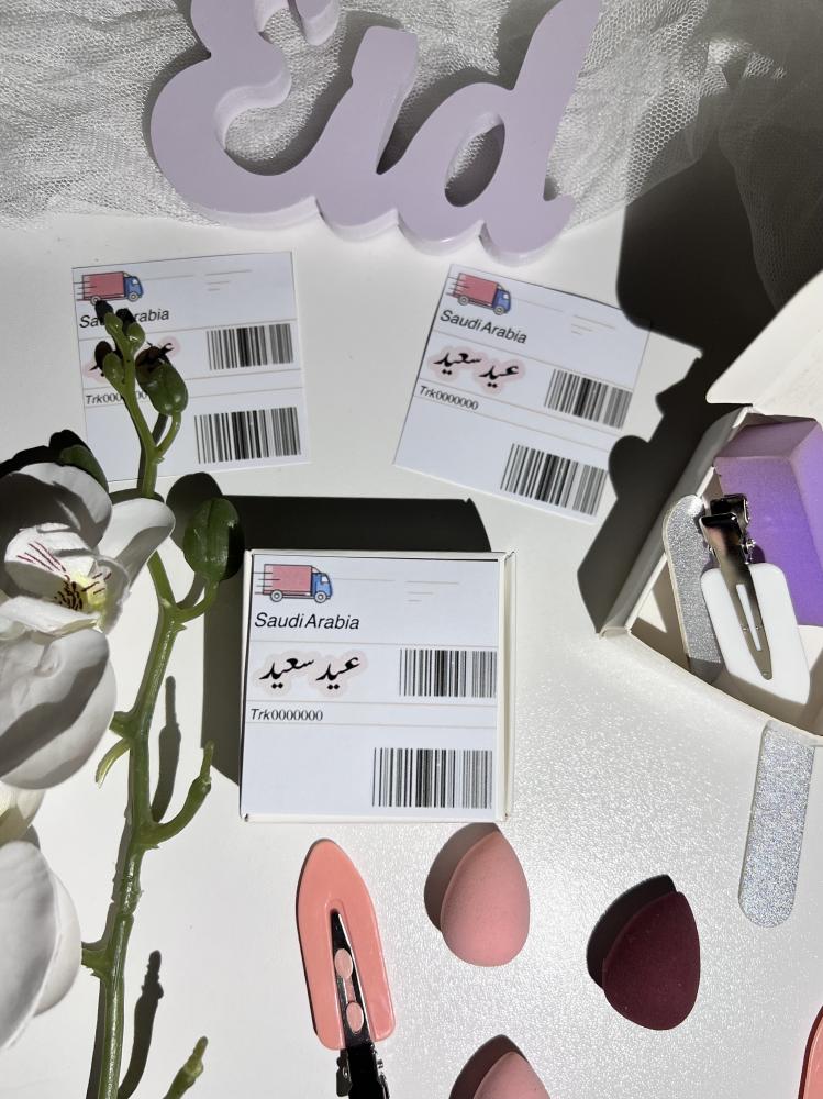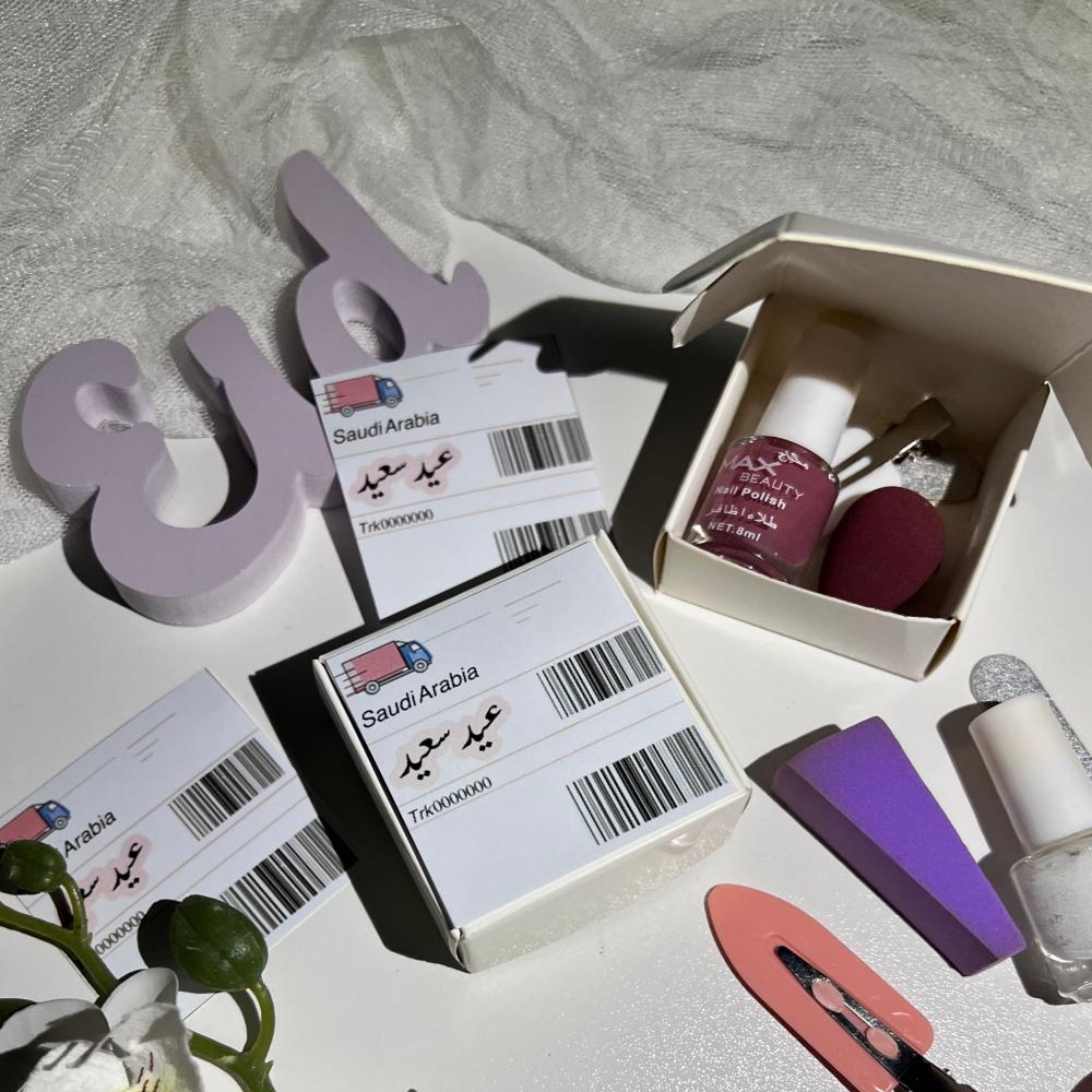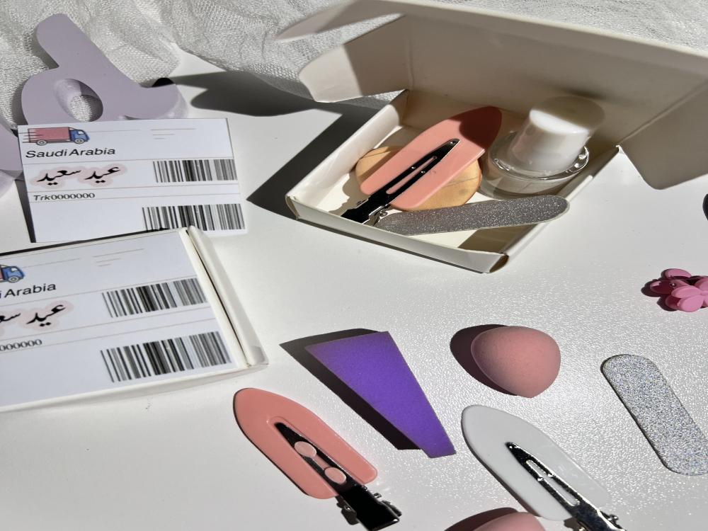 البوكس الاول ( مناكير+ اسفنجة ميكب + مبرد اظافر +شباصه شعر )