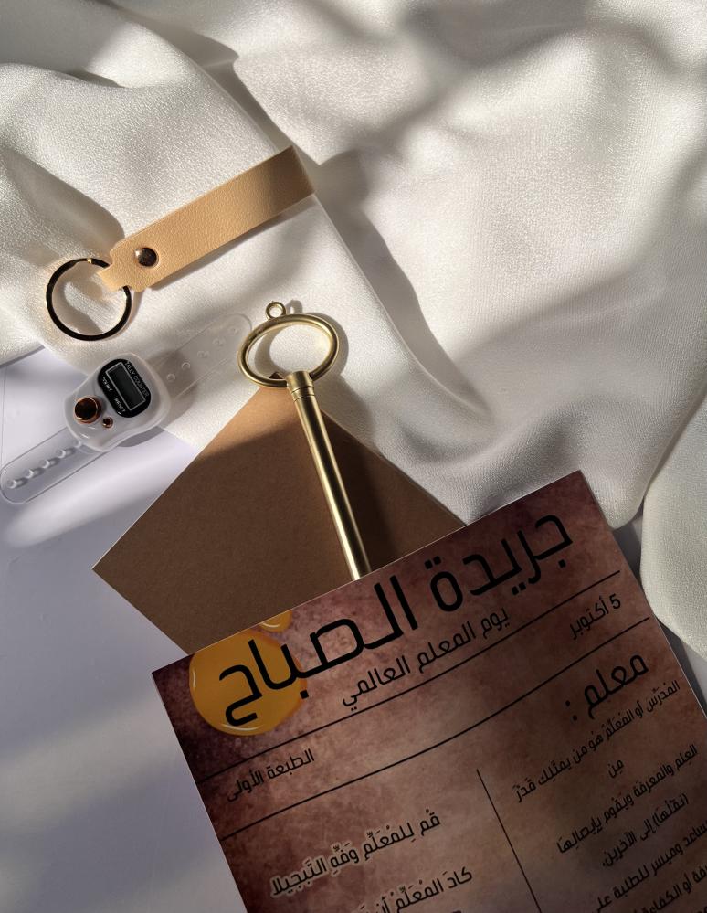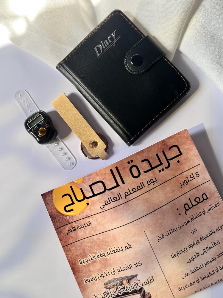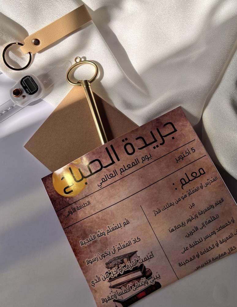 تحتوي الهدية على ثيم جريدة الصباح ليوم المعلم يمكنك اختيار التوزيعه يمكنك اضافه الاسم العدد:1* اللون عشوائي