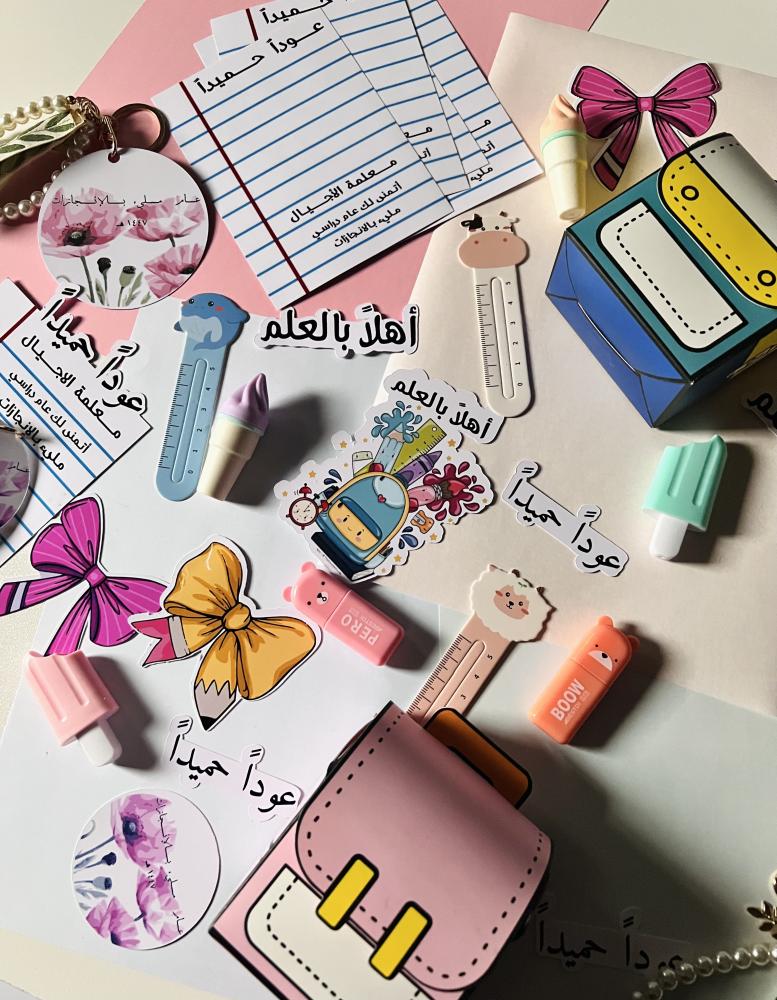 توزيعات العودة للمدرسةالعدد :1 ** اختيار التوزيعهيمكنك اضافه اسم او عباره مختلفة * اللون والشكل عشوائي