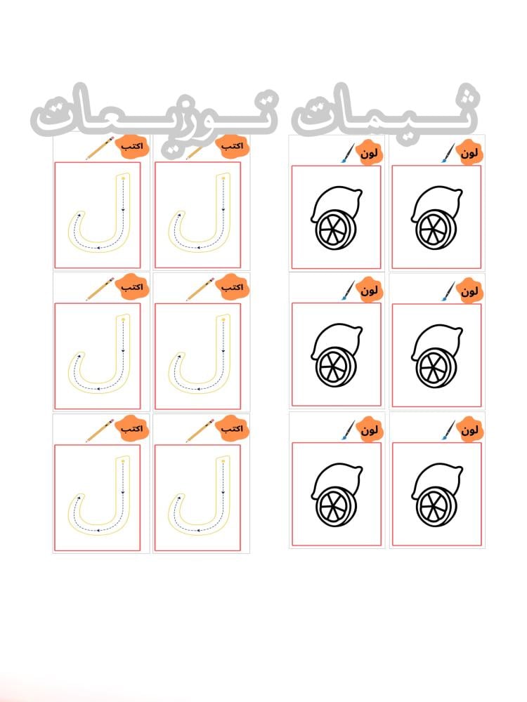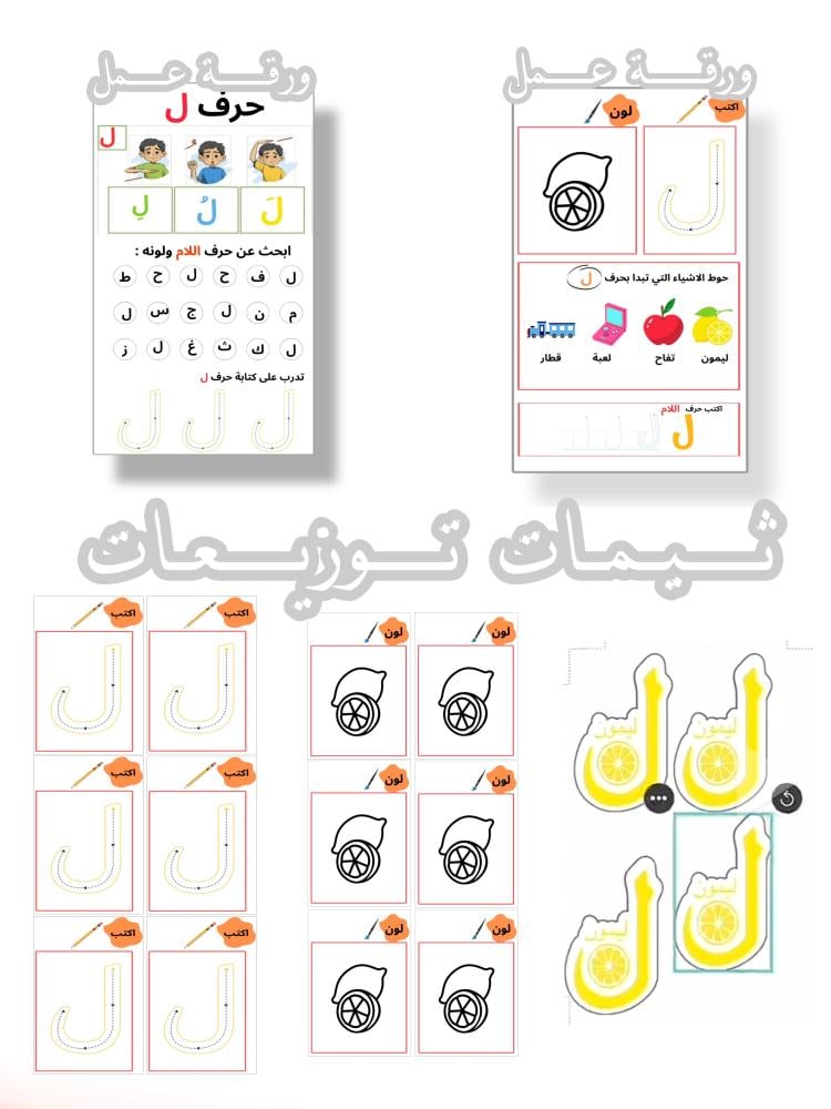 - صفحة A4 توزيعات كتابه حرف ل ( 6 نسخ )