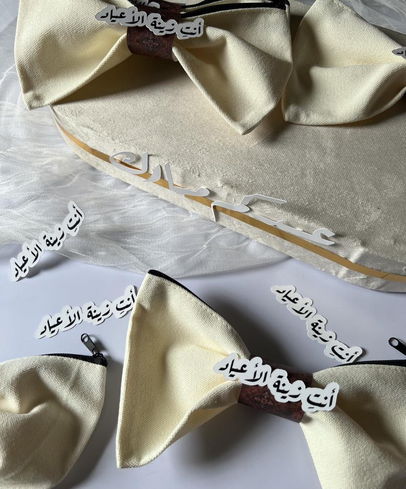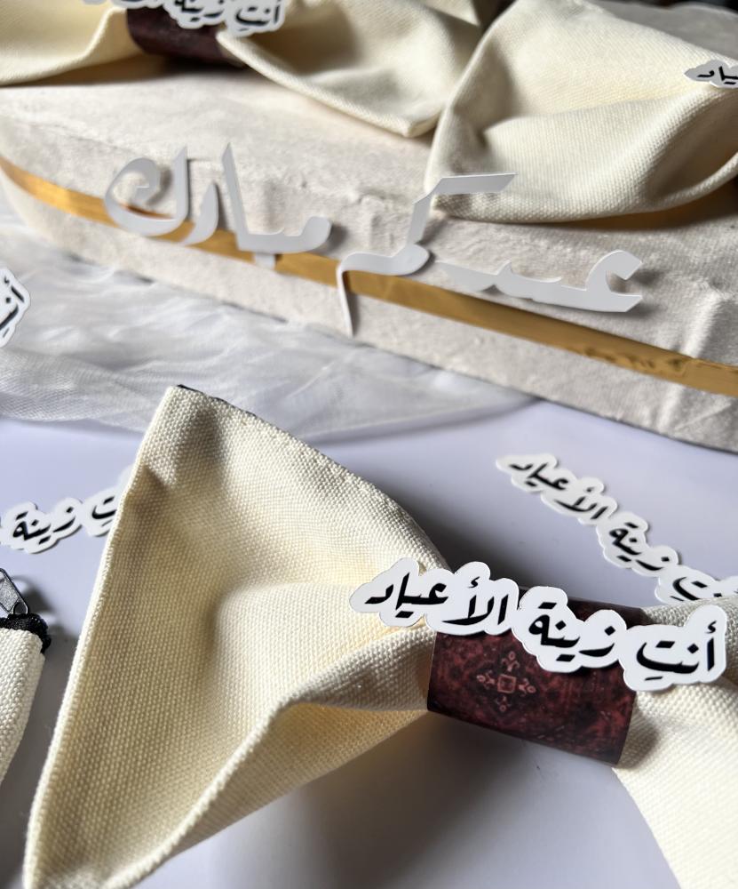 الشكل الاول : مزين بثيم وعبارة العيد ( ثيم ورقي قص على شكل العباره )