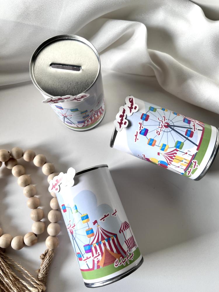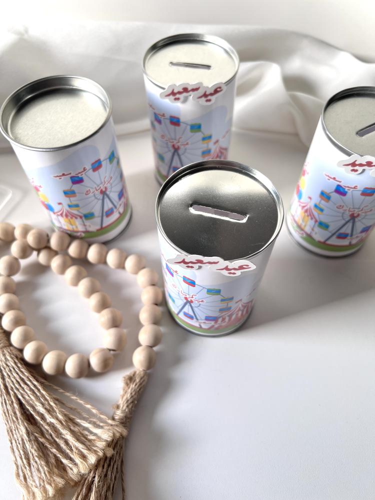 توزيعات العيديات العدد :1 حصاله او علبه قابله للفتح والتعبئة مغلفه بثيم وعباره ( عيد سعيد ) يمكنك اضافه الاسم