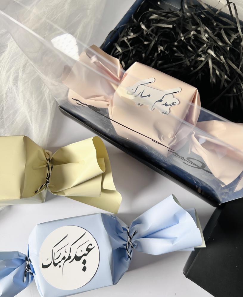 صندوق مربع شفاف مغلف بتغليف هدايا 🍬 مع ثيم