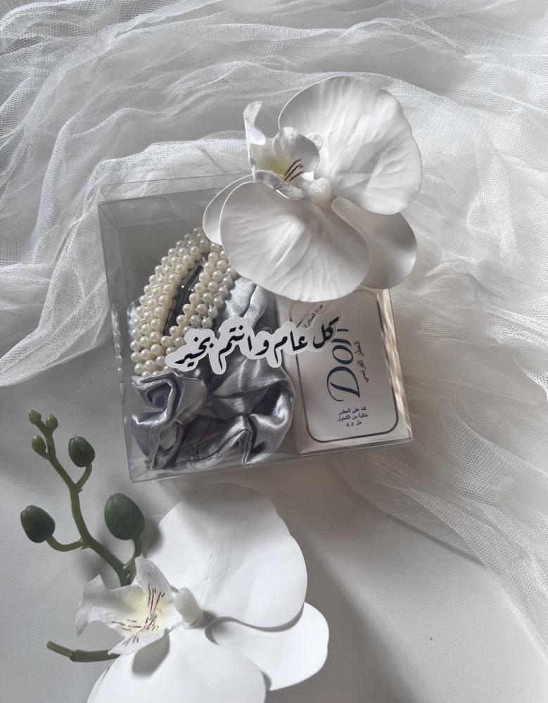 تحتوي الهدية علىبوكس شفافعطر فرنسي من دوفربطة شعراكسسوار شعرمزين بوردة وعبارةيمكنك اضافه عبارة مختلفة* اللون عشوائي