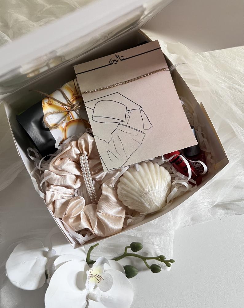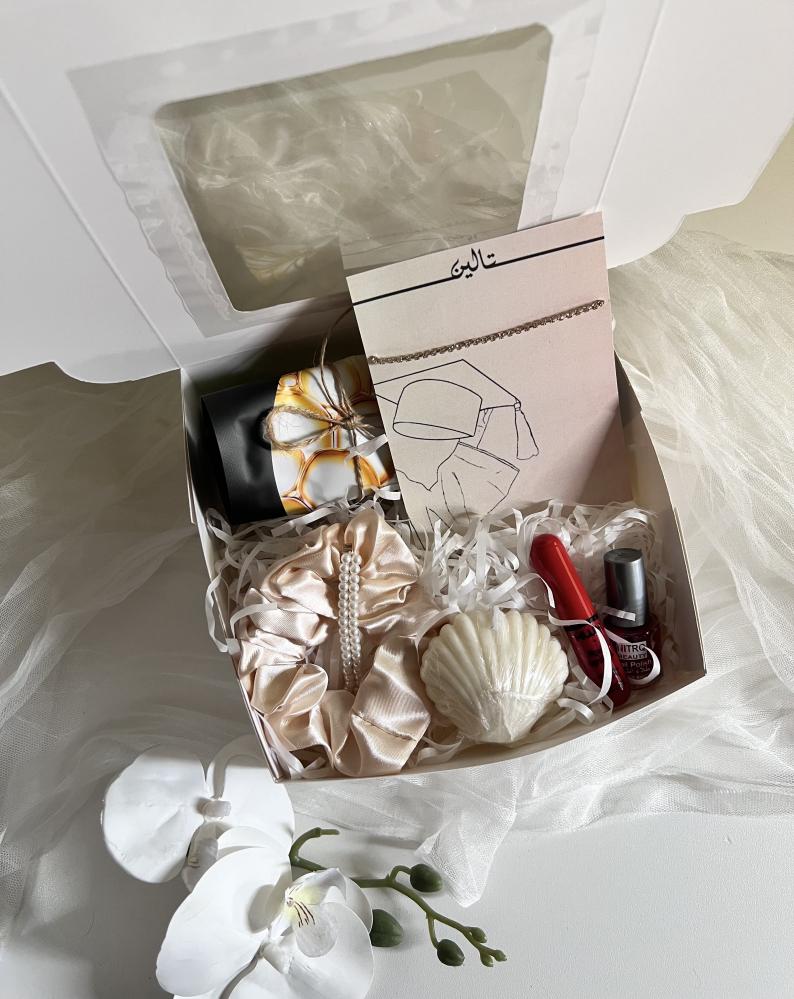 يحتوي على بوكس هدايا ثيم مع سواره بالاسم ماسك جايجون او 2 ماسك ايفر ستار ربطه شعر اكسسوار شعرمناكير روج شمعة برائحة الفانيلاالعدد :1 اللون عشوائي شكل البوكس عشوائي