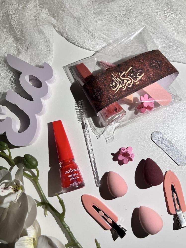 تحتوي على ( مناكير + اسفنجة ميكب + مشط حواجب+ مبرد اظافر + شباصه صغيره )