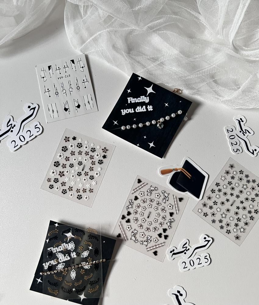 توزيعات الخريجينتحتوي على ثيم تخرج مع اسواره + استكرات اظافرالعدد :1 يمكنك اضافه الاسم او العبارة اللون والشكل عشوائي