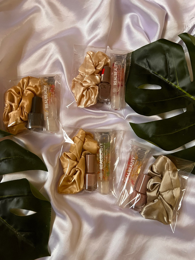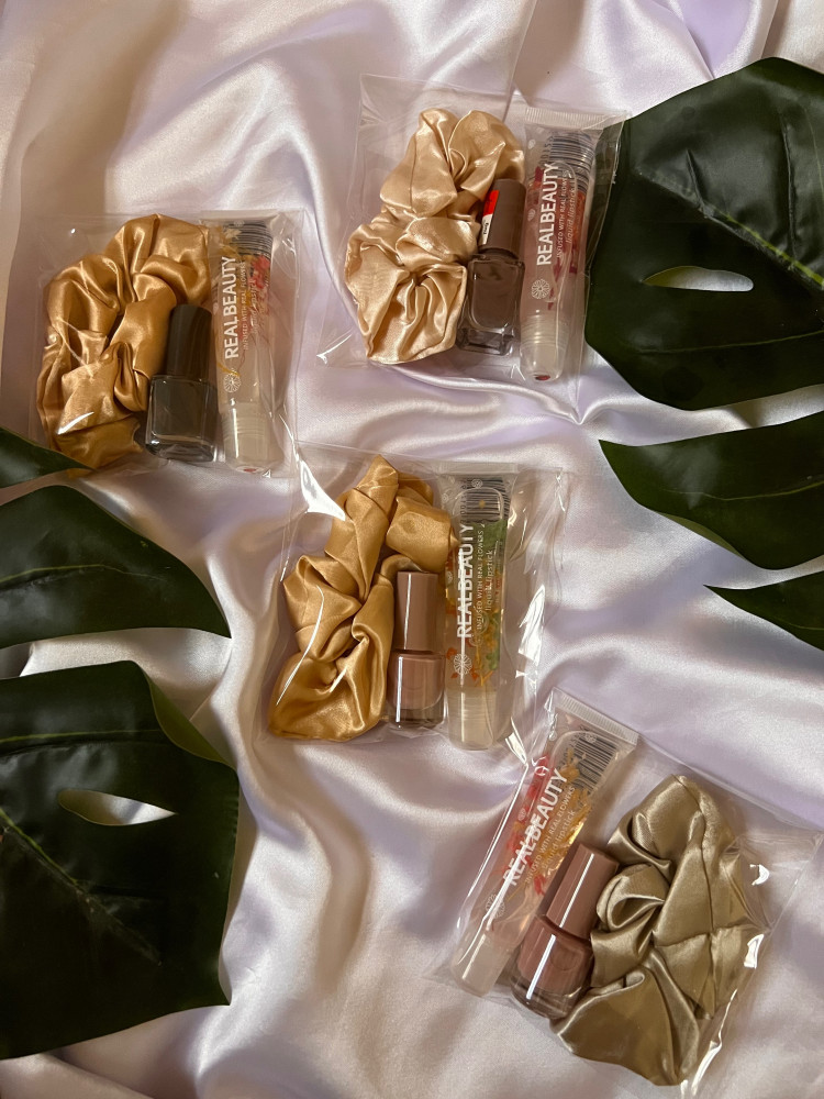توزيعات العدد : 1 حبة يحتوي على ربطه شعرمناكير مينيمرطب شفايفمغلف بكيس بشفاف* اختيار لون الربطه + المناكير عشوائي