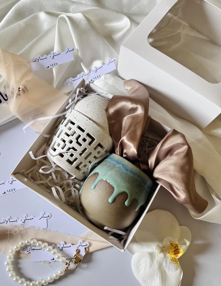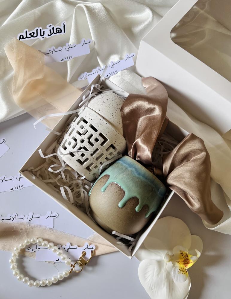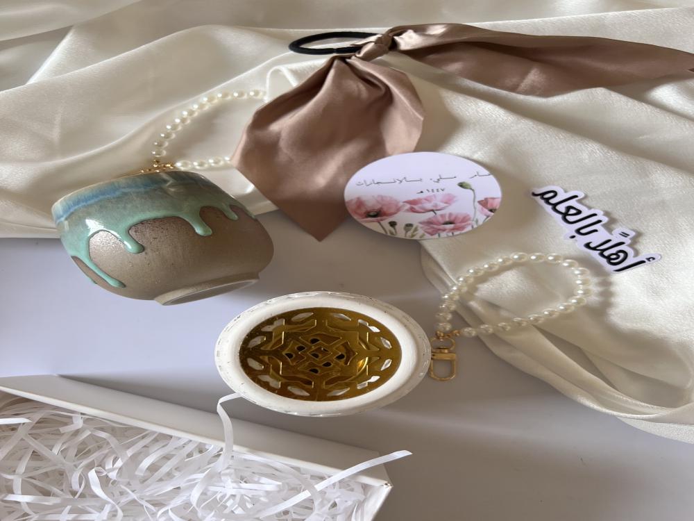 ( كوب هدية + مبخره + ربطه شعر + تعليقه لولو )