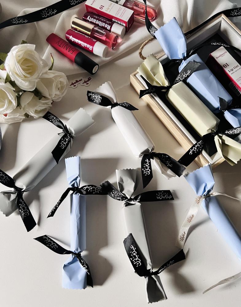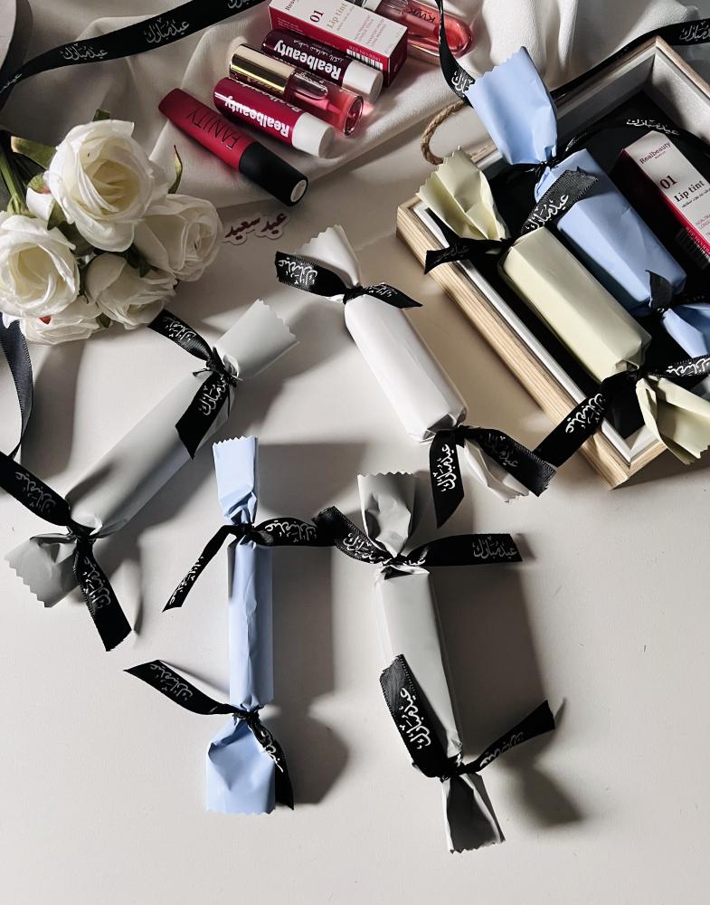 . يأتي المنتج بتغليف على شكل حلاوه بألوان هادئة (أبيض، رمادي، سماوي ، اخضر فاتح )،